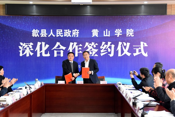 4月9日,歙县与黄山学院签署地校深化合作协议,黄山徽投集团作为歙县国有企业代表与黄山学院旅游学院签署战略合作协议,共同开启“优势互补、资源共享、互惠双赢、共同发展”的合作新篇章。